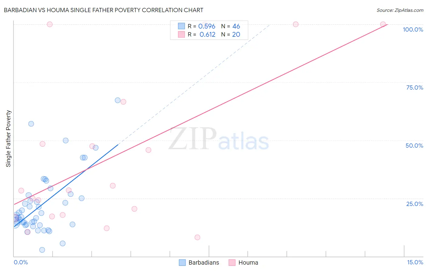Barbadian vs Houma Single Father Poverty Correlation Chart