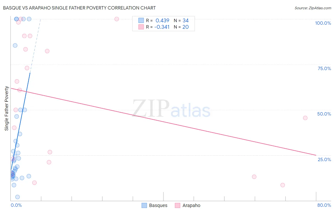 Basque vs Arapaho Single Father Poverty Correlation Chart