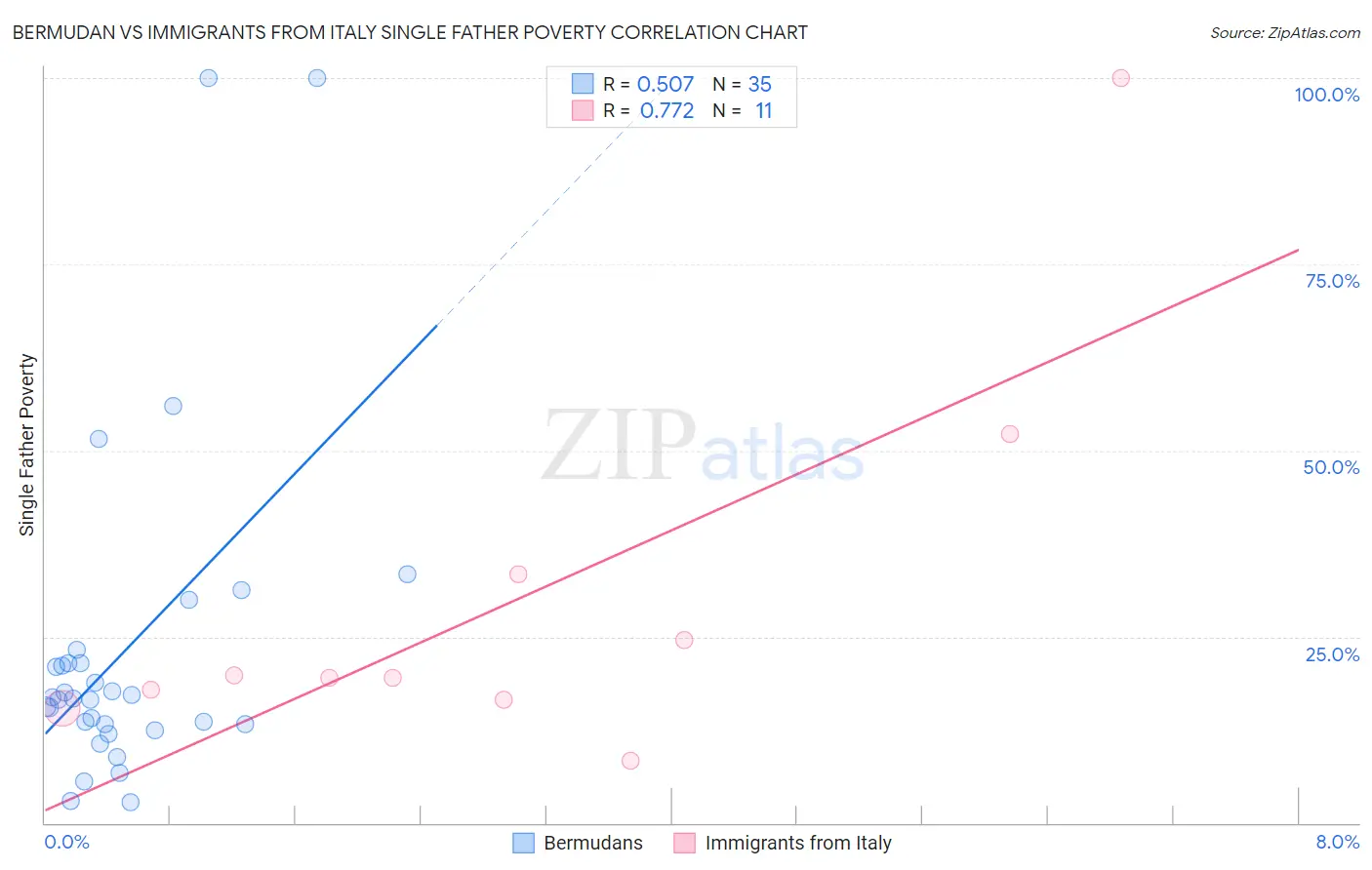 Bermudan vs Immigrants from Italy Single Father Poverty Correlation Chart
