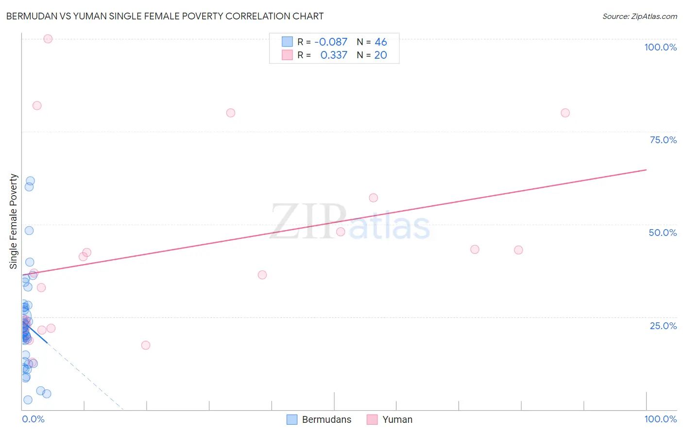 Bermudan vs Yuman Single Female Poverty Correlation Chart