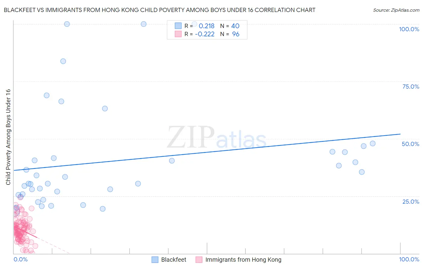 Blackfeet vs Immigrants from Hong Kong Child Poverty Among Boys Under 16 Correlation Chart