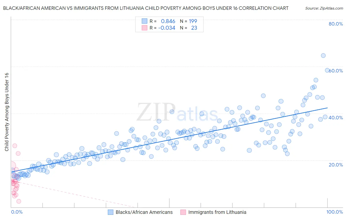 Black/African American vs Immigrants from Lithuania Child Poverty Among Boys Under 16 Correlation Chart