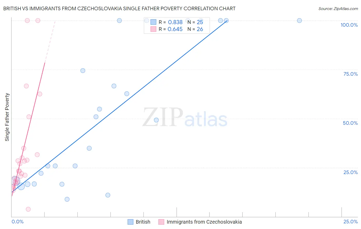 British vs Immigrants from Czechoslovakia Single Father Poverty Correlation Chart