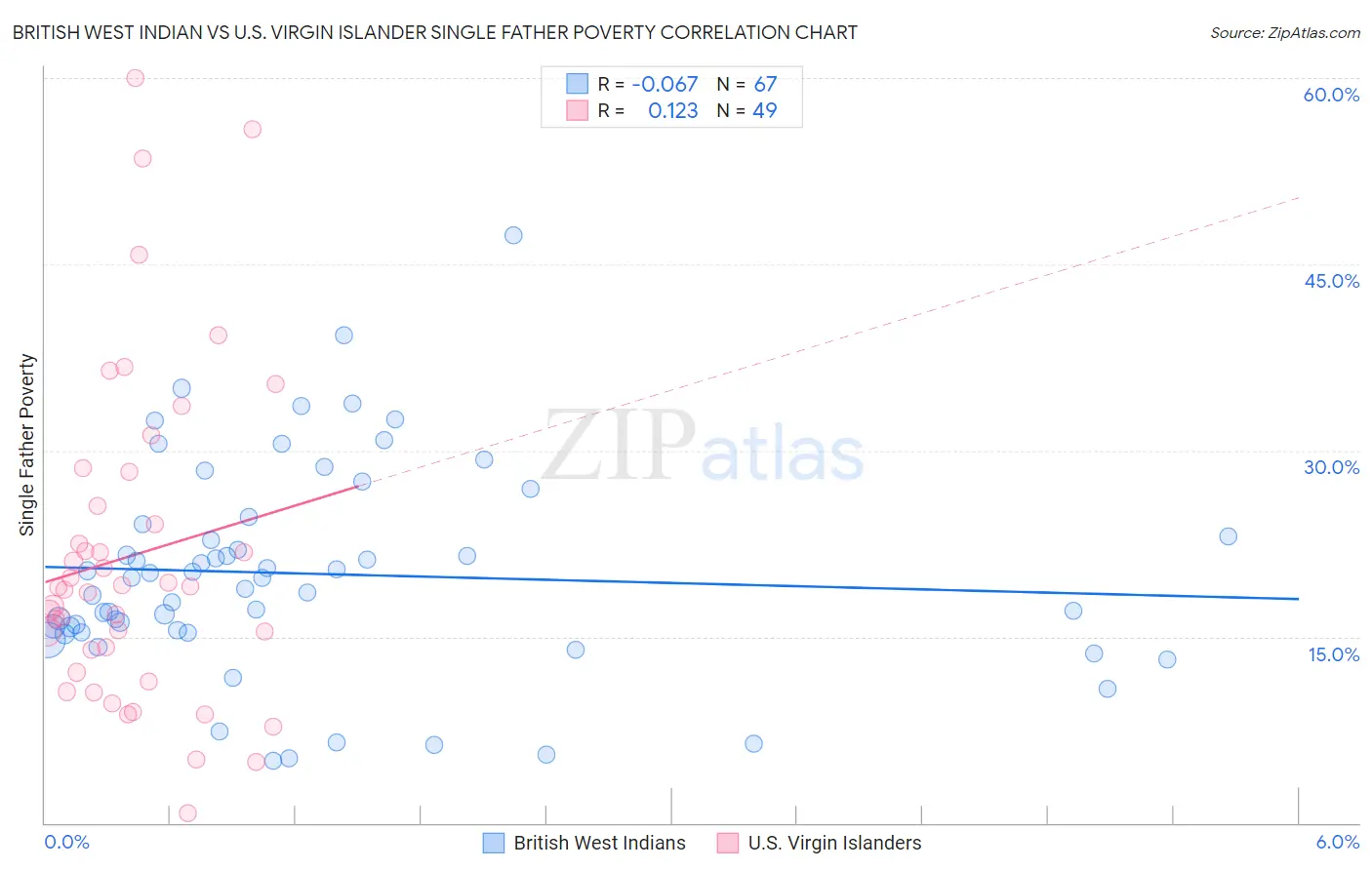 British West Indian vs U.S. Virgin Islander Single Father Poverty Correlation Chart