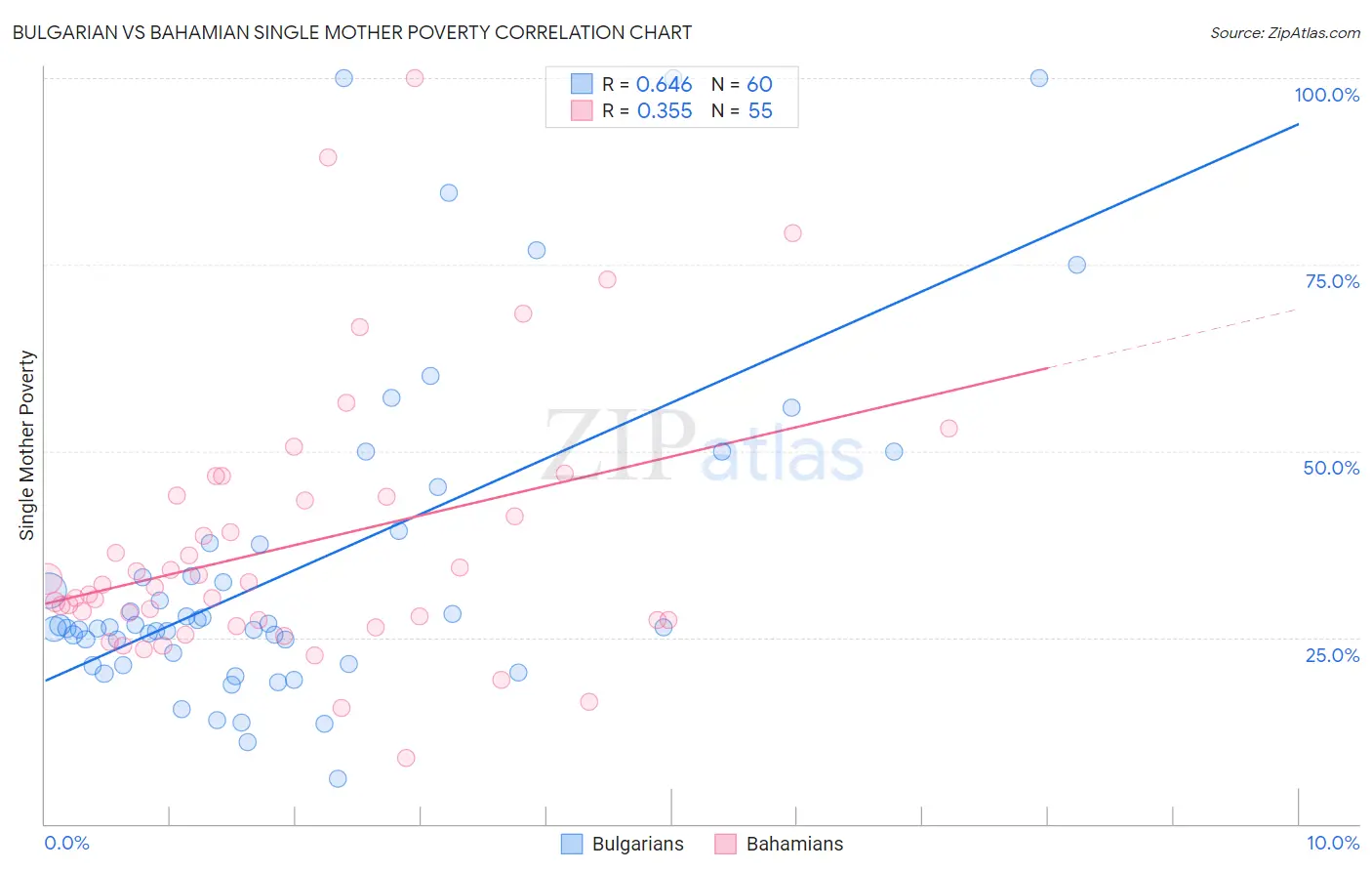 Bulgarian vs Bahamian Single Mother Poverty Correlation Chart