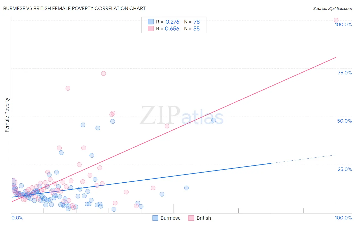 Burmese vs British Female Poverty Correlation Chart