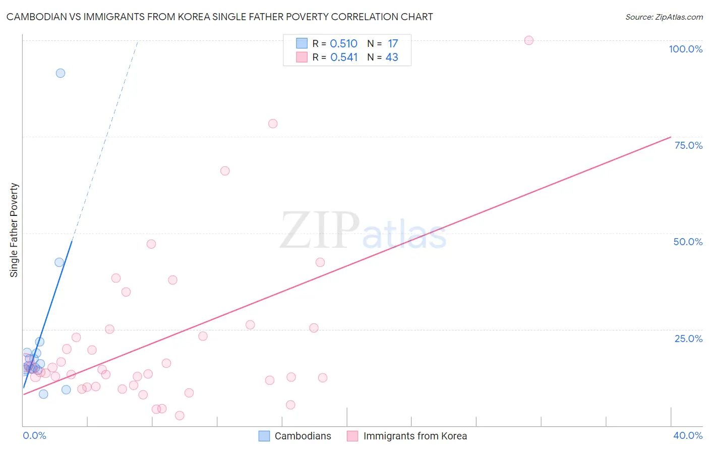 Cambodian vs Immigrants from Korea Single Father Poverty Correlation Chart