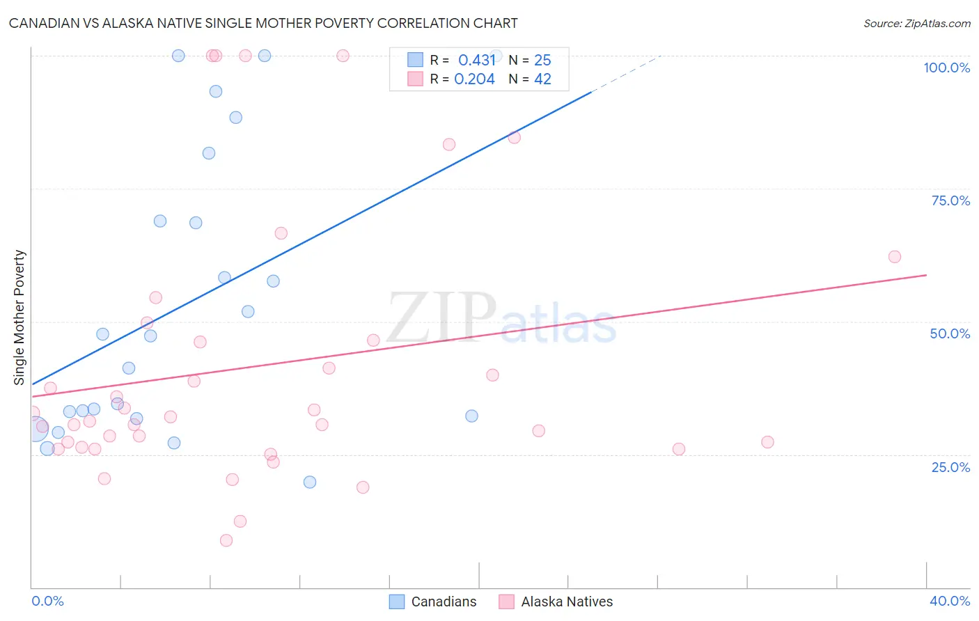 Canadian vs Alaska Native Single Mother Poverty Correlation Chart