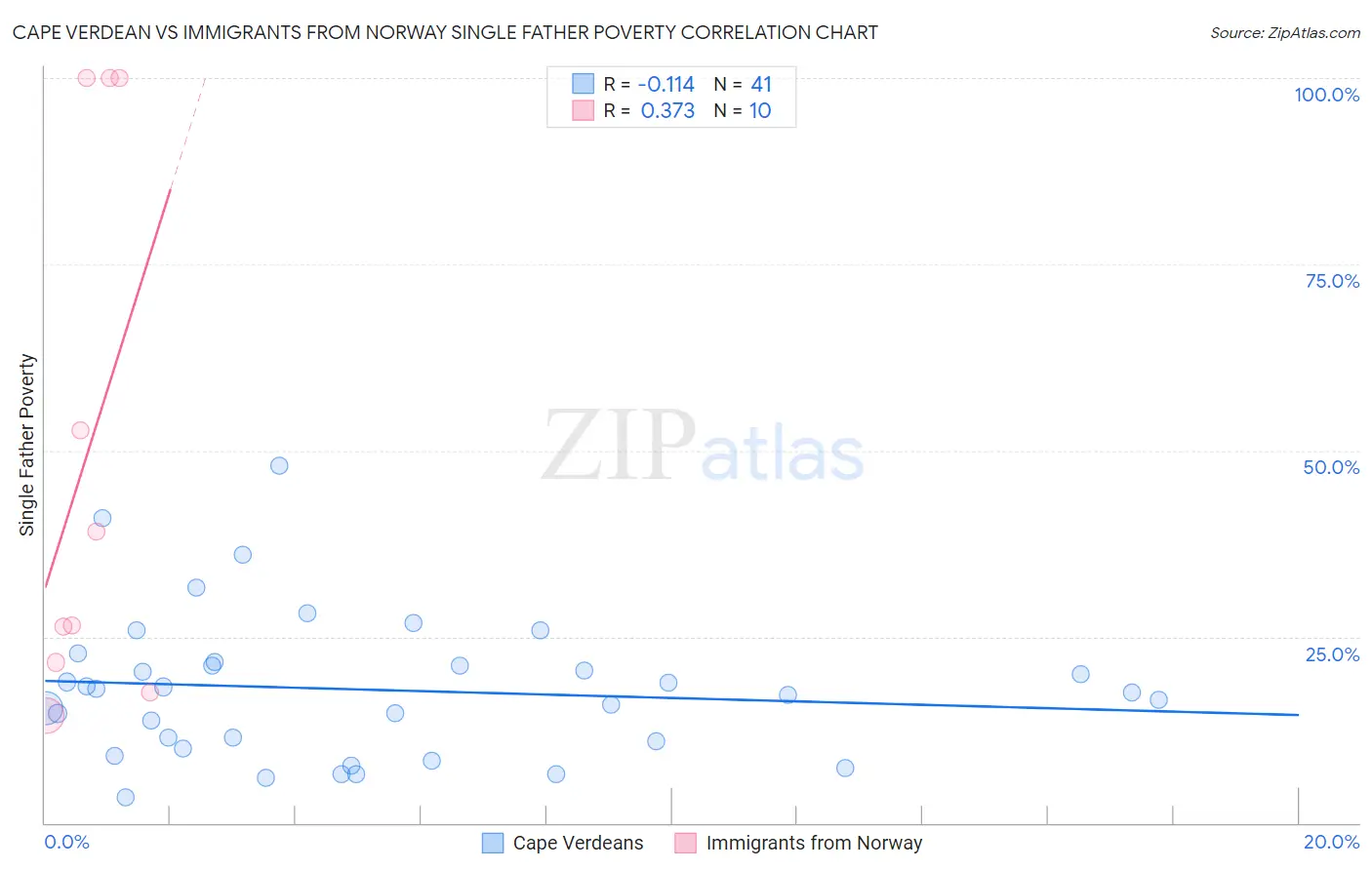 Cape Verdean vs Immigrants from Norway Single Father Poverty Correlation Chart