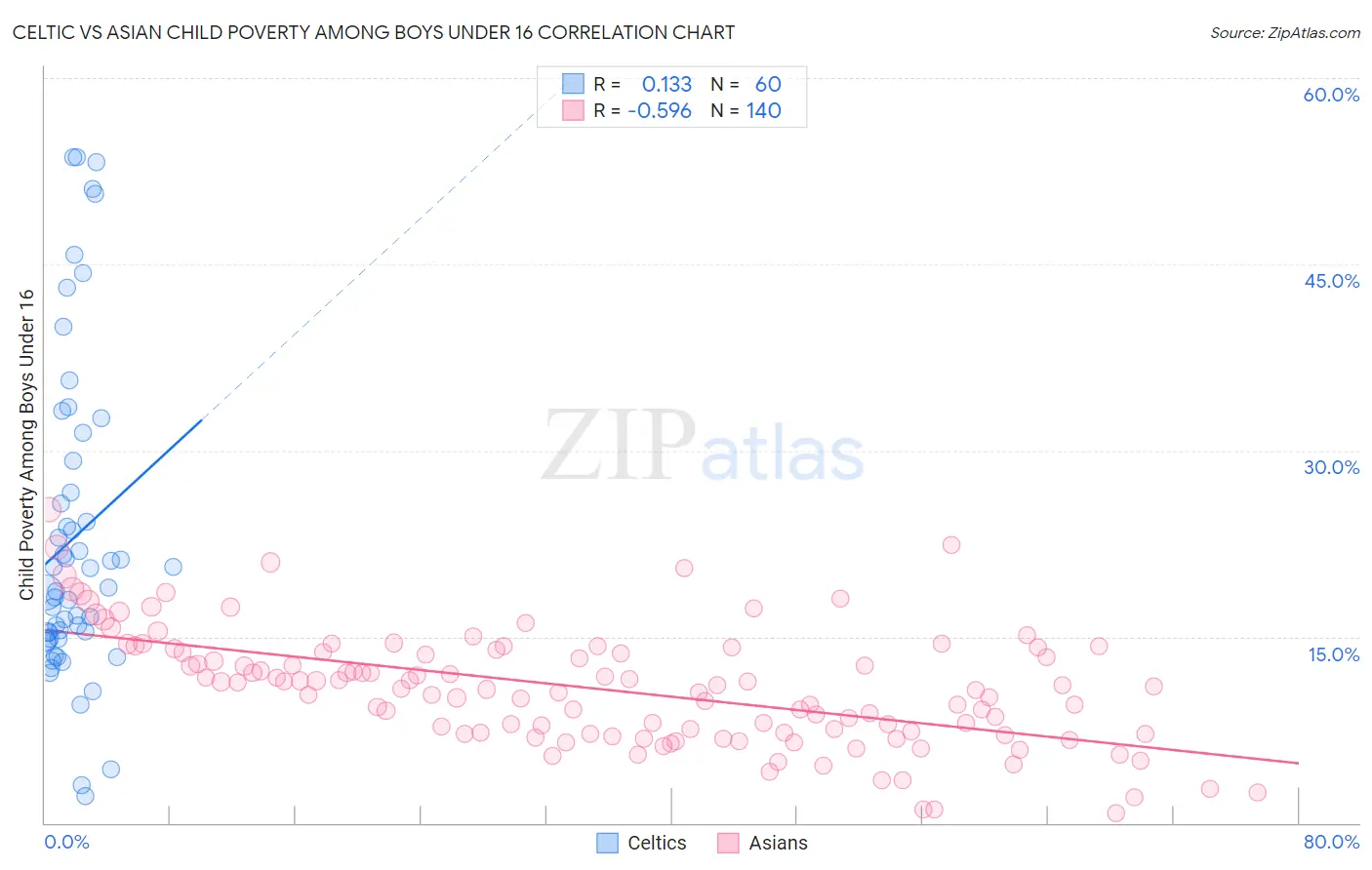 Celtic vs Asian Child Poverty Among Boys Under 16 Correlation Chart
