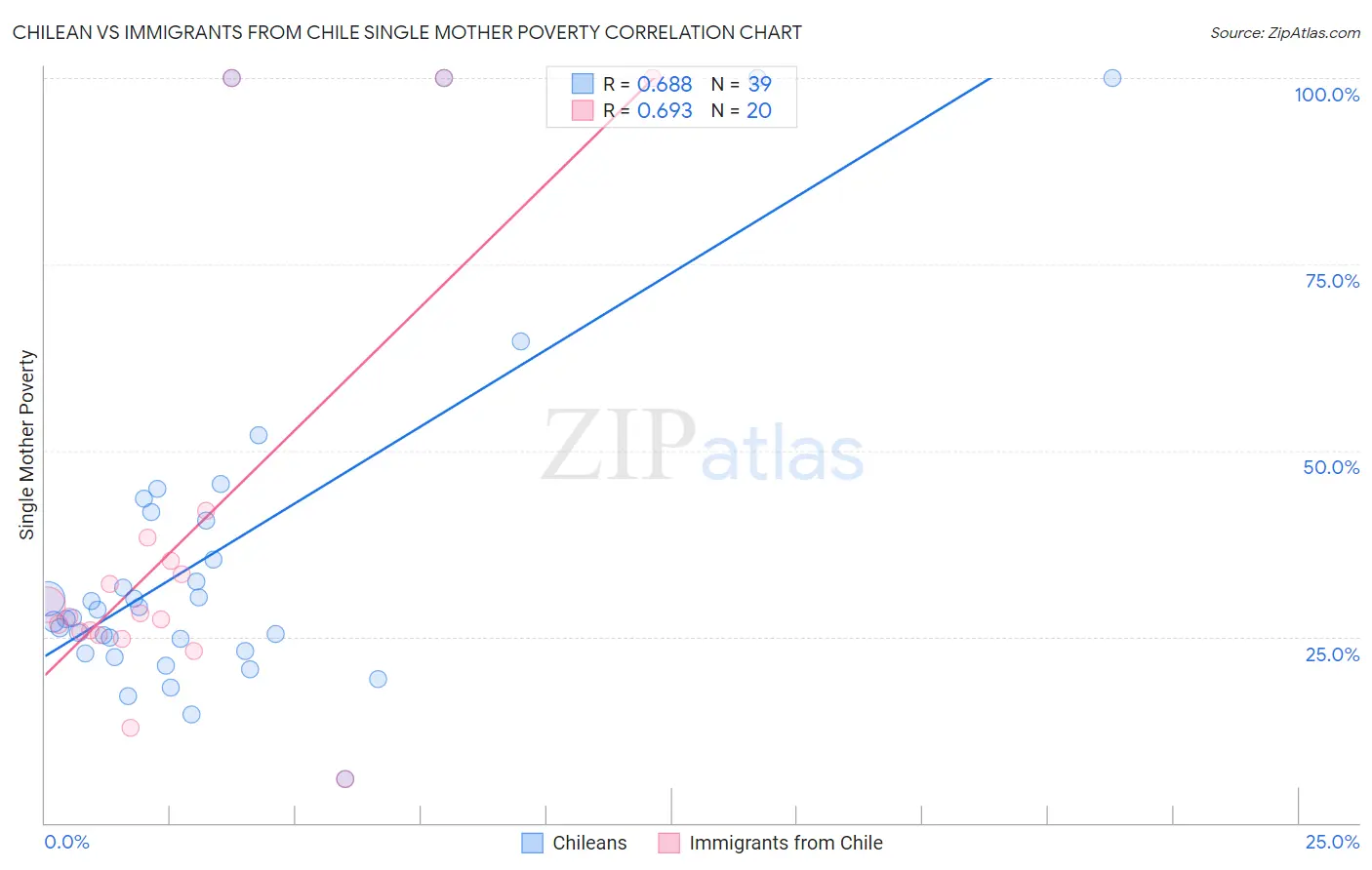 Chilean vs Immigrants from Chile Single Mother Poverty Correlation Chart