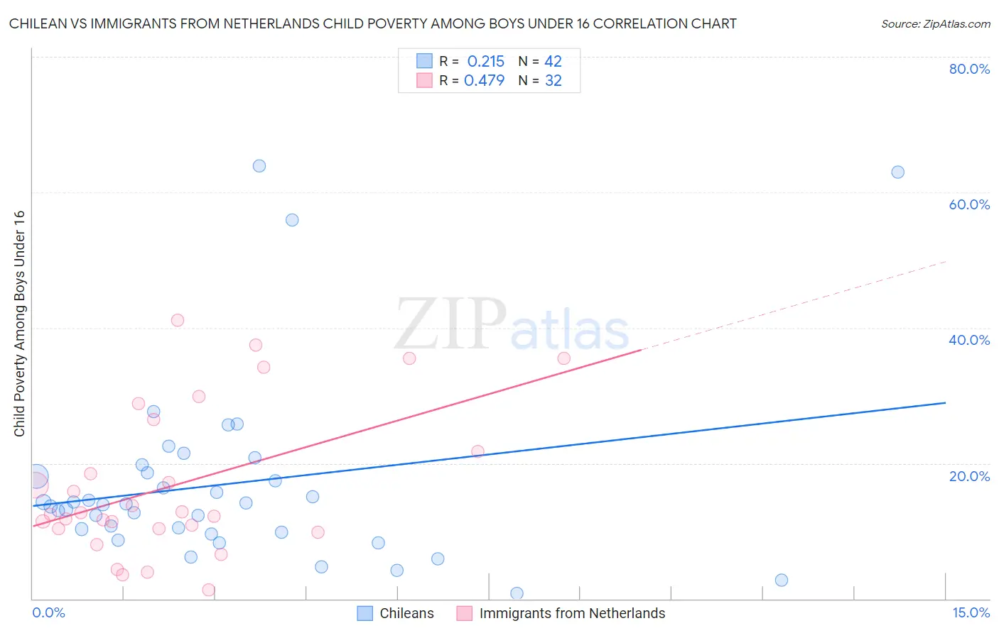 Chilean vs Immigrants from Netherlands Child Poverty Among Boys Under 16 Correlation Chart