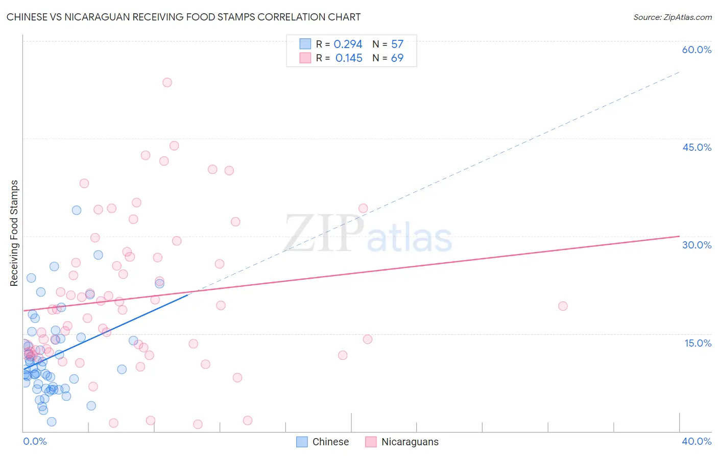 Chinese vs Nicaraguan Receiving Food Stamps Correlation Chart