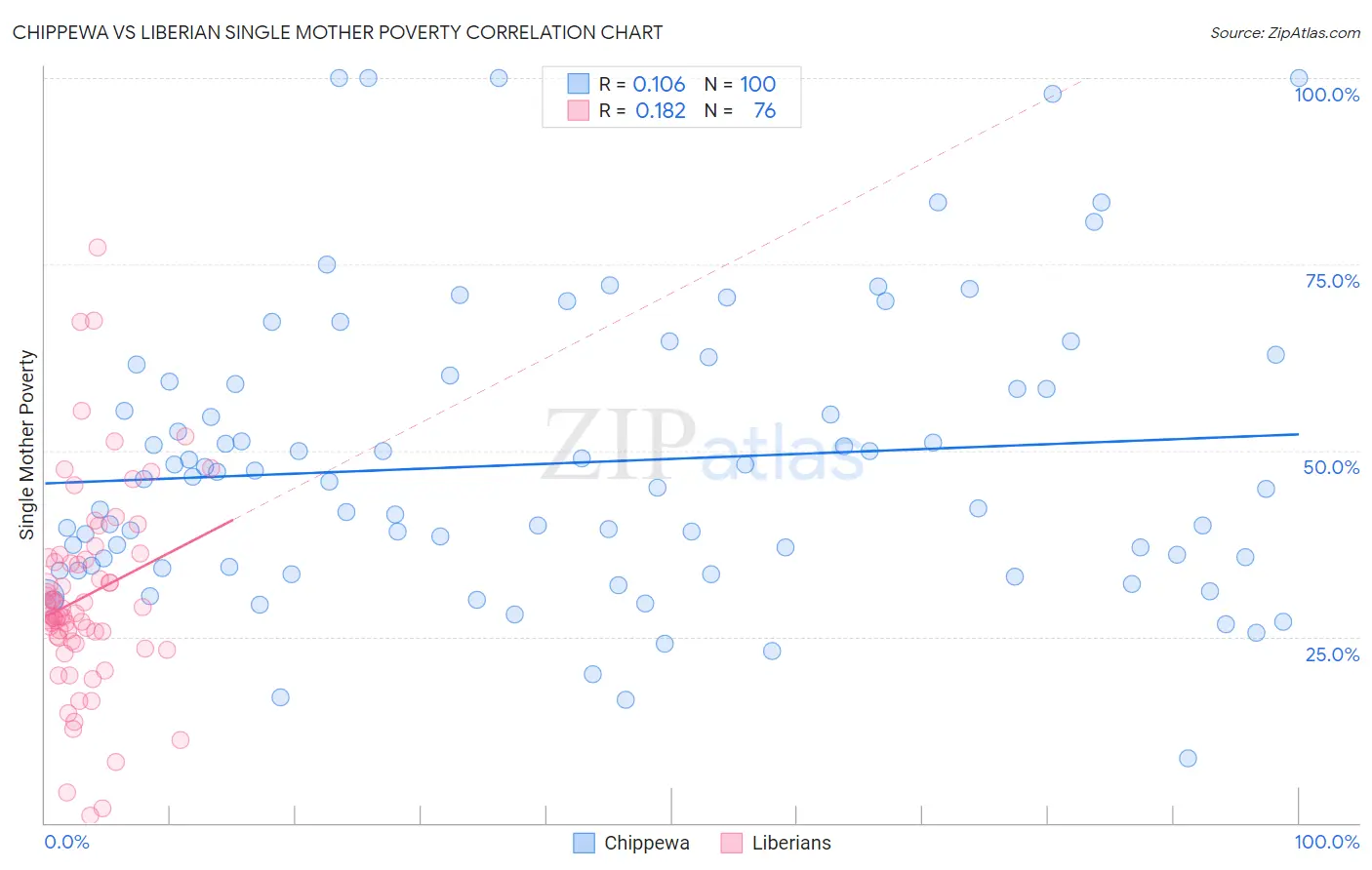 Chippewa vs Liberian Single Mother Poverty Correlation Chart