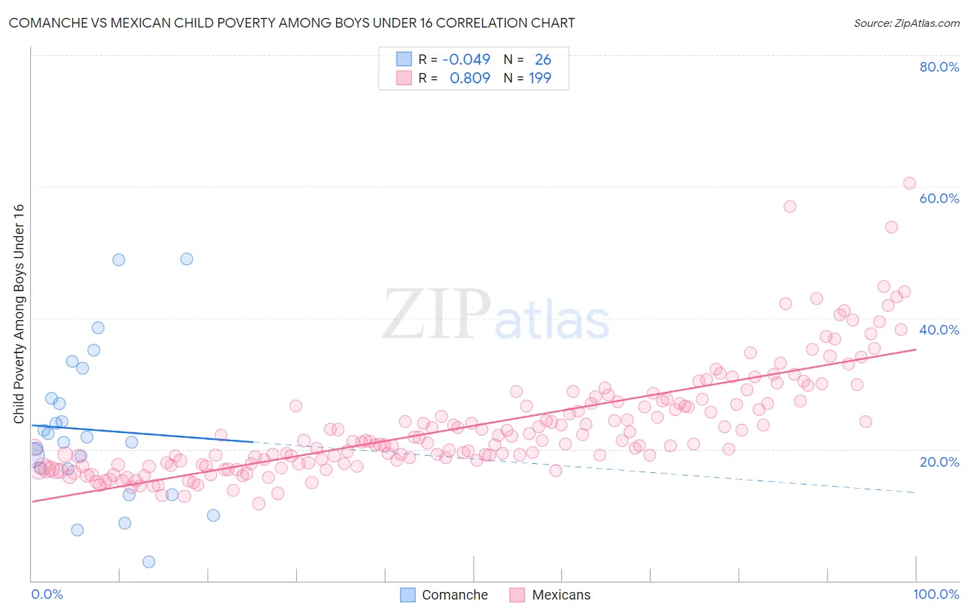Comanche vs Mexican Child Poverty Among Boys Under 16 Correlation Chart