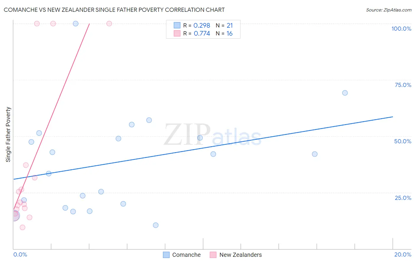Comanche vs New Zealander Single Father Poverty Correlation Chart