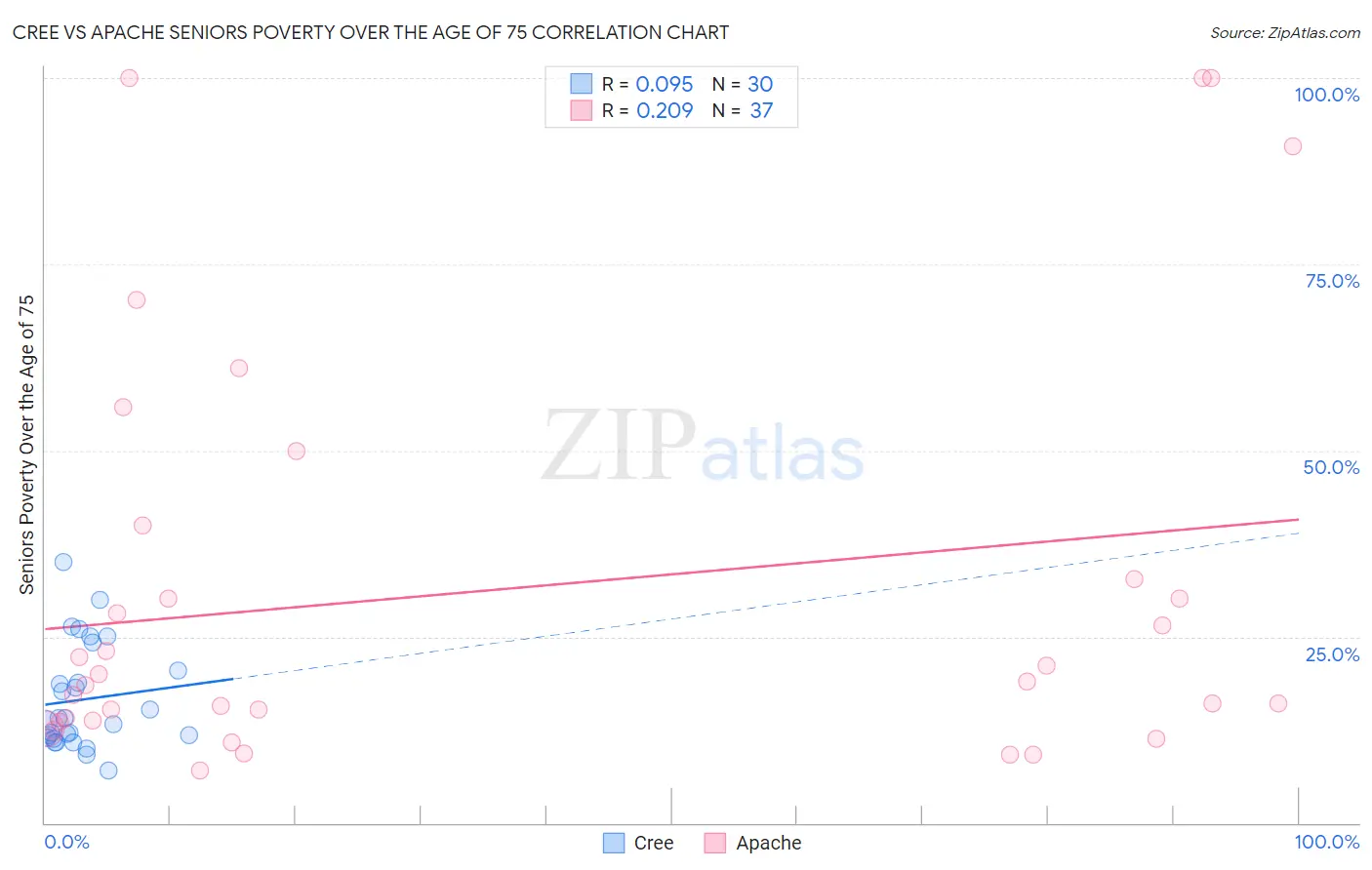 Cree vs Apache Seniors Poverty Over the Age of 75 Correlation Chart