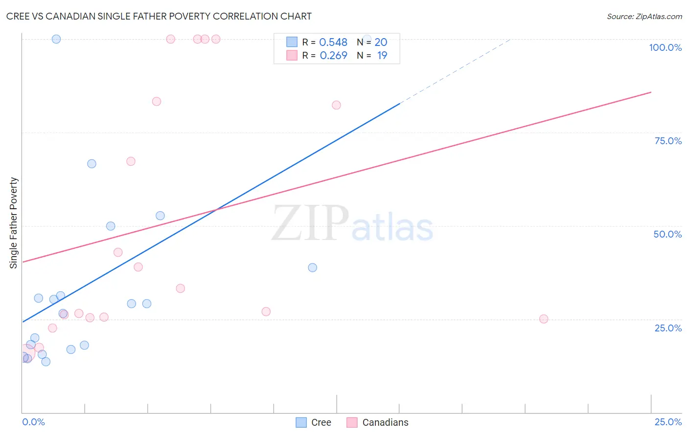Cree vs Canadian Single Father Poverty Correlation Chart