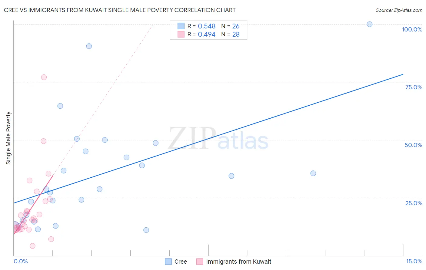 Cree vs Immigrants from Kuwait Single Male Poverty Correlation Chart