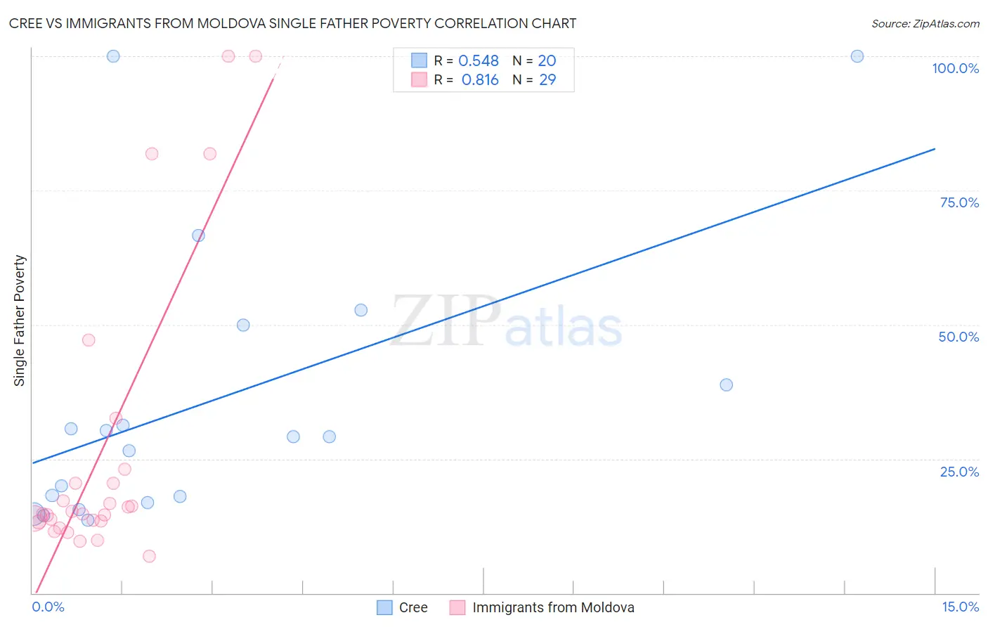 Cree vs Immigrants from Moldova Single Father Poverty Correlation Chart