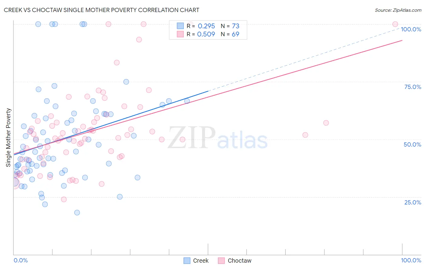 Creek vs Choctaw Single Mother Poverty Correlation Chart