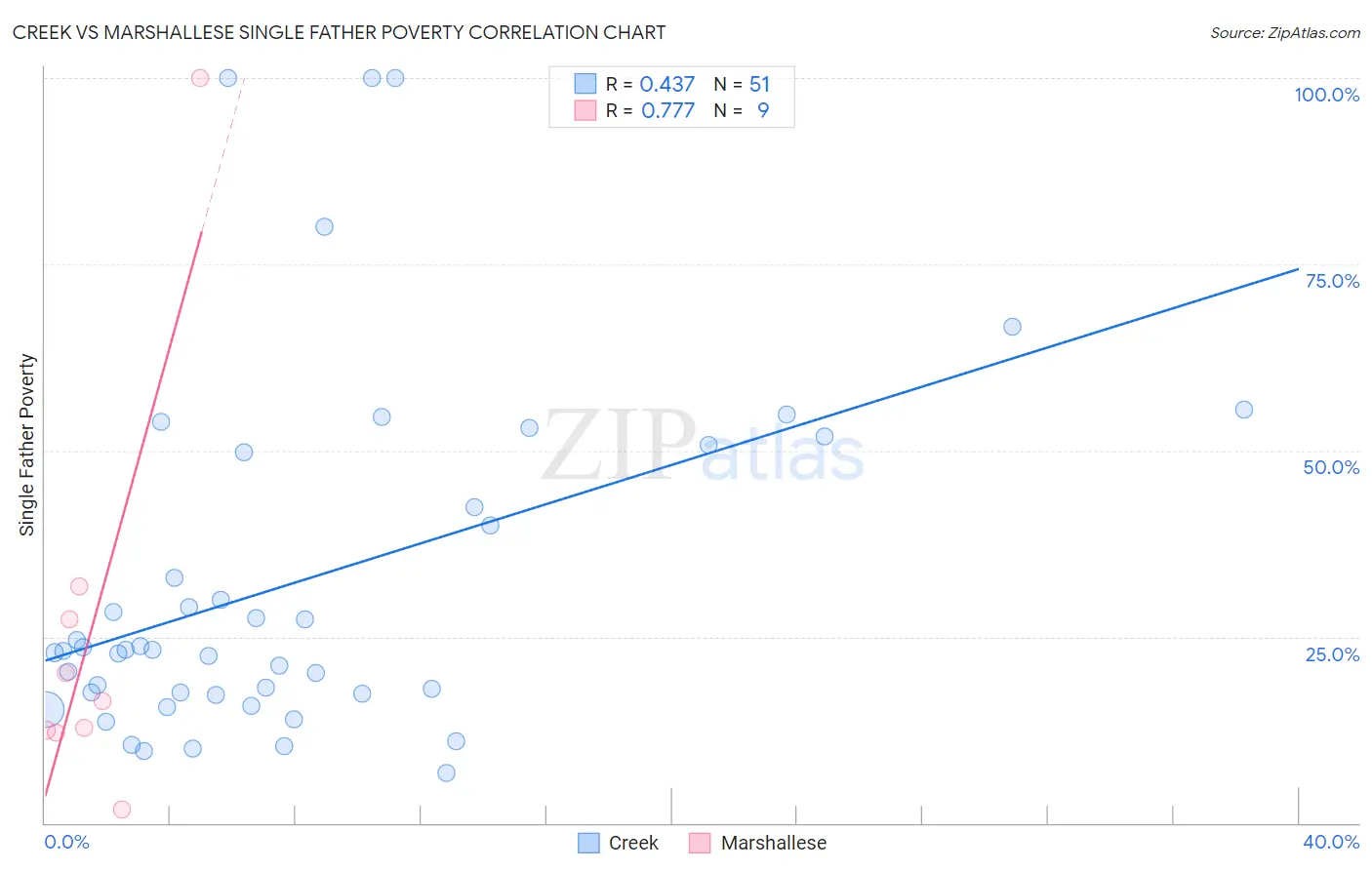 Creek vs Marshallese Single Father Poverty Correlation Chart