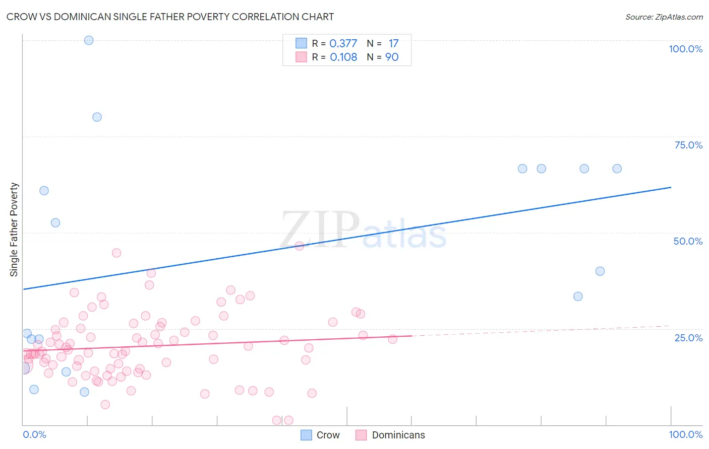Crow vs Dominican Single Father Poverty Correlation Chart