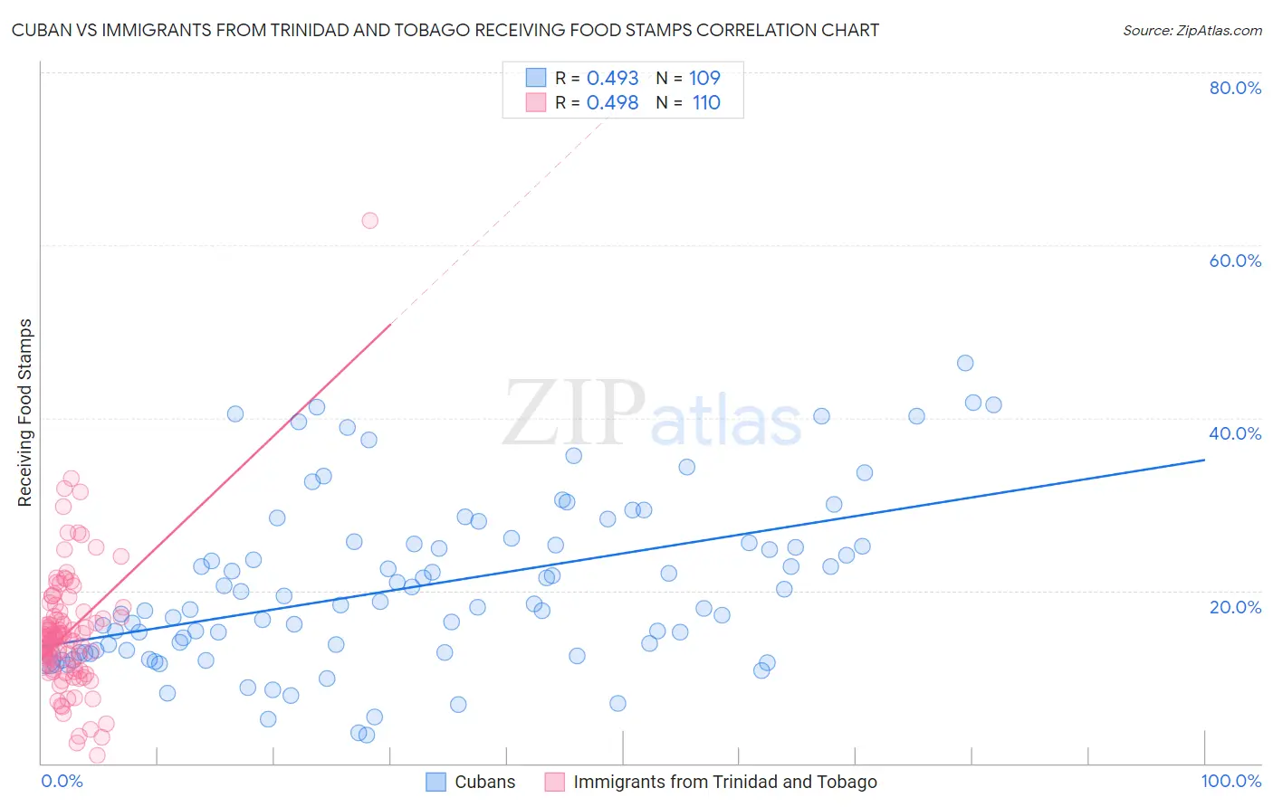 Cuban vs Immigrants from Trinidad and Tobago Receiving Food Stamps Correlation Chart