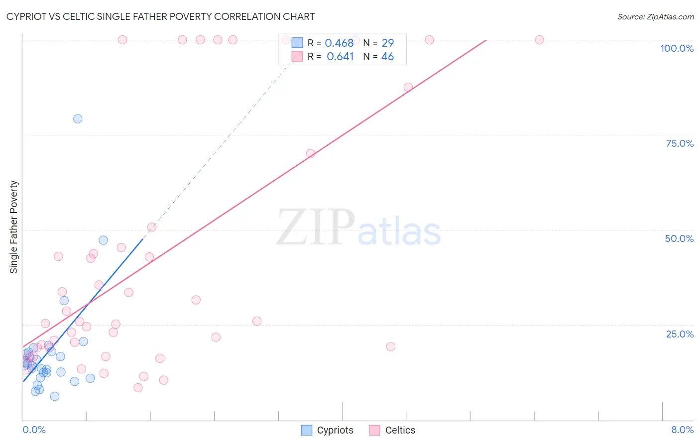 Cypriot vs Celtic Single Father Poverty Correlation Chart