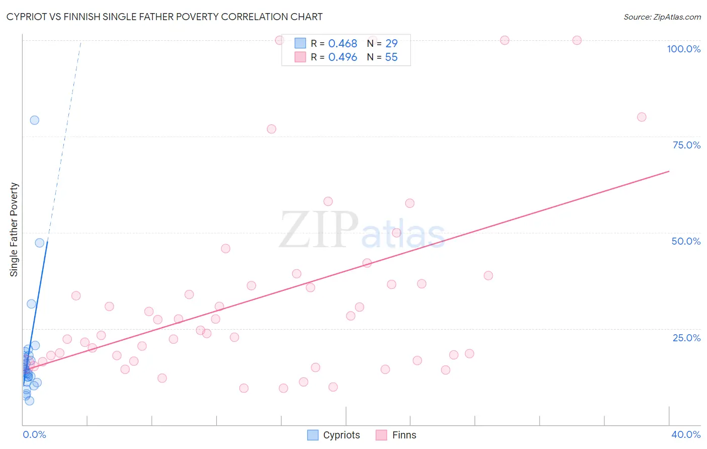 Cypriot vs Finnish Single Father Poverty Correlation Chart