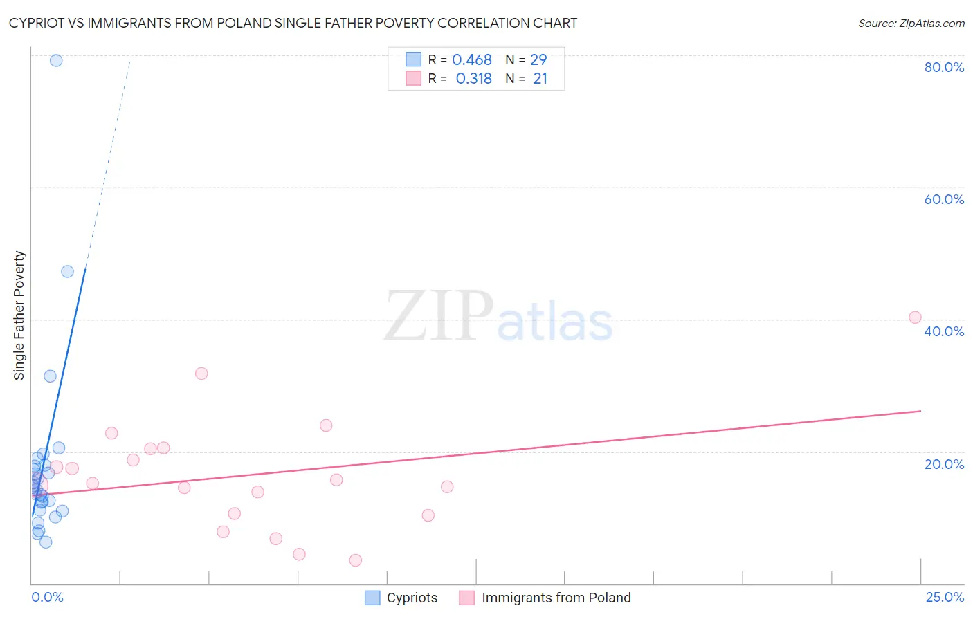 Cypriot vs Immigrants from Poland Single Father Poverty Correlation Chart