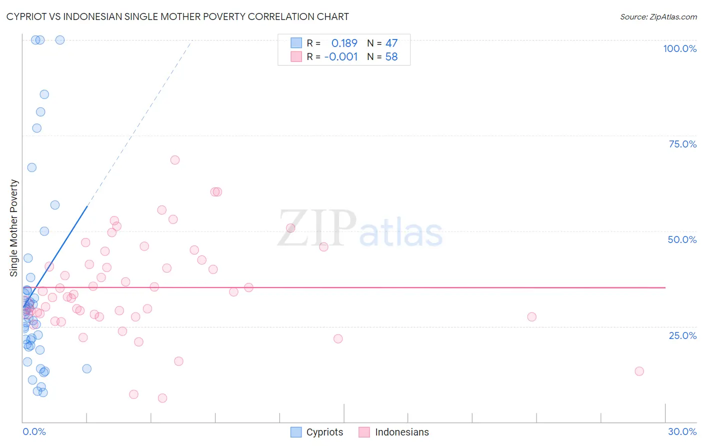 Cypriot vs Indonesian Single Mother Poverty Correlation Chart