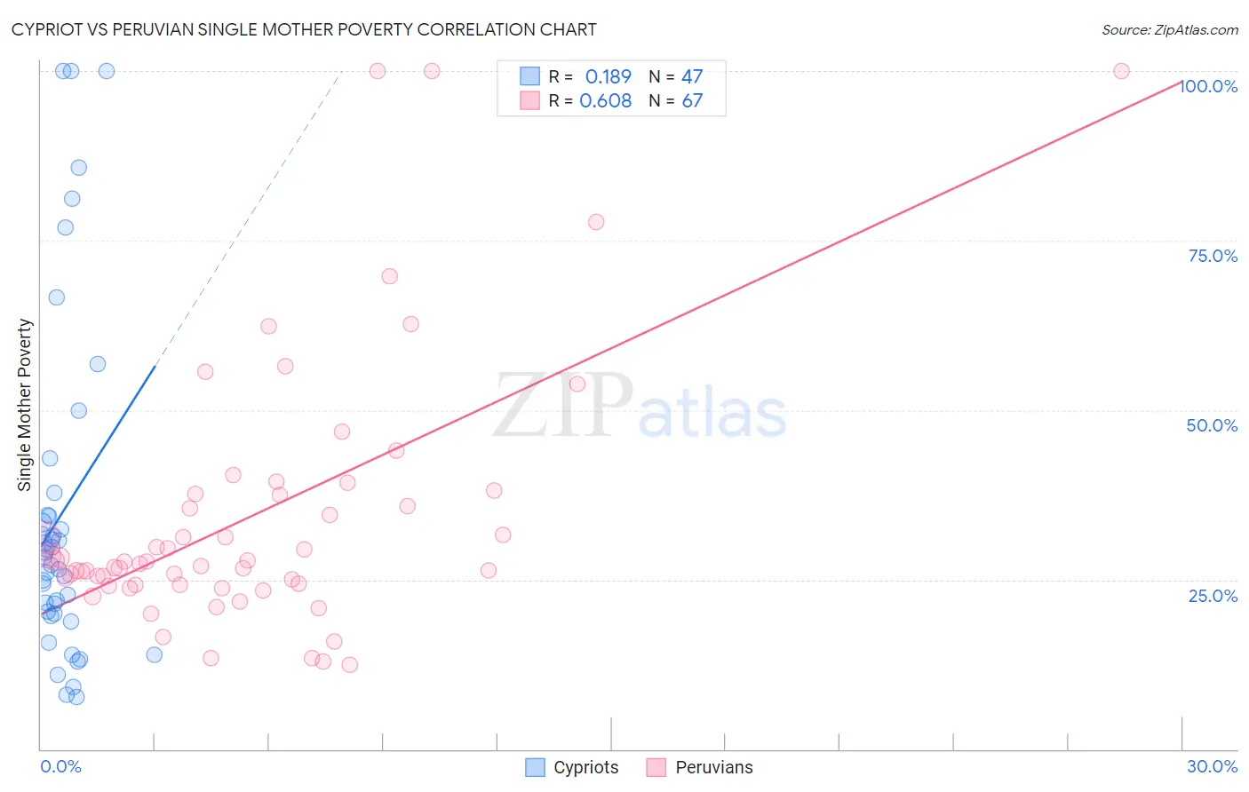 Cypriot vs Peruvian Single Mother Poverty Correlation Chart