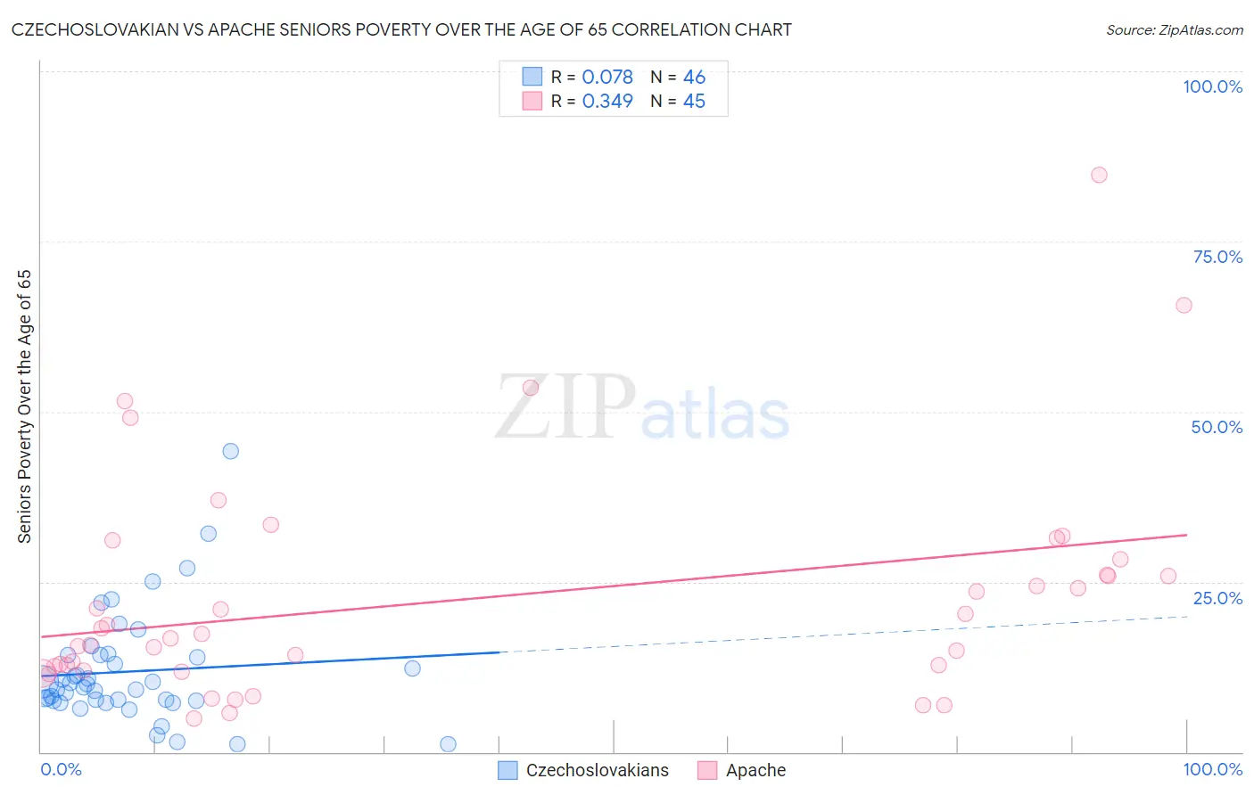 Czechoslovakian vs Apache Seniors Poverty Over the Age of 65 Correlation Chart