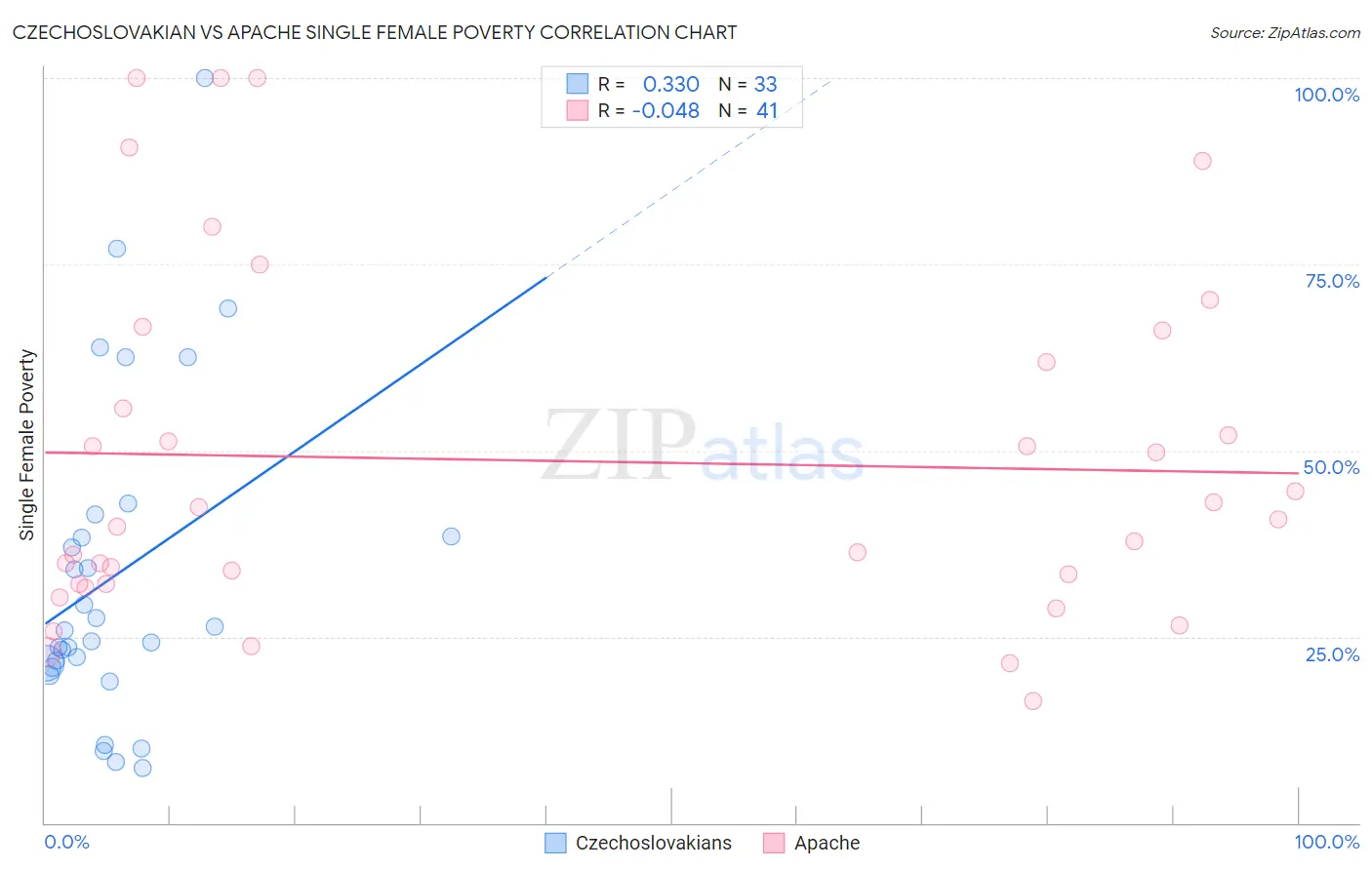 Czechoslovakian vs Apache Single Female Poverty Correlation Chart