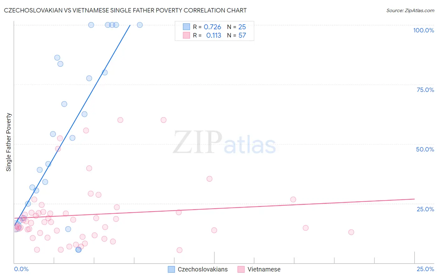 Czechoslovakian vs Vietnamese Single Father Poverty Correlation Chart