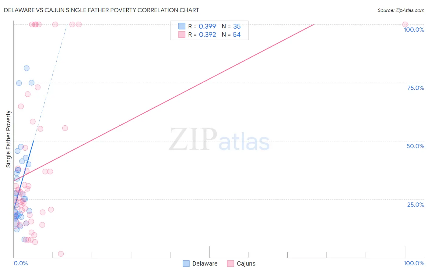 Delaware vs Cajun Single Father Poverty Correlation Chart