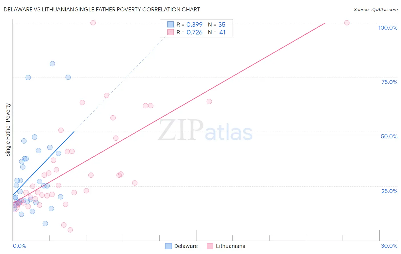Delaware vs Lithuanian Single Father Poverty Correlation Chart