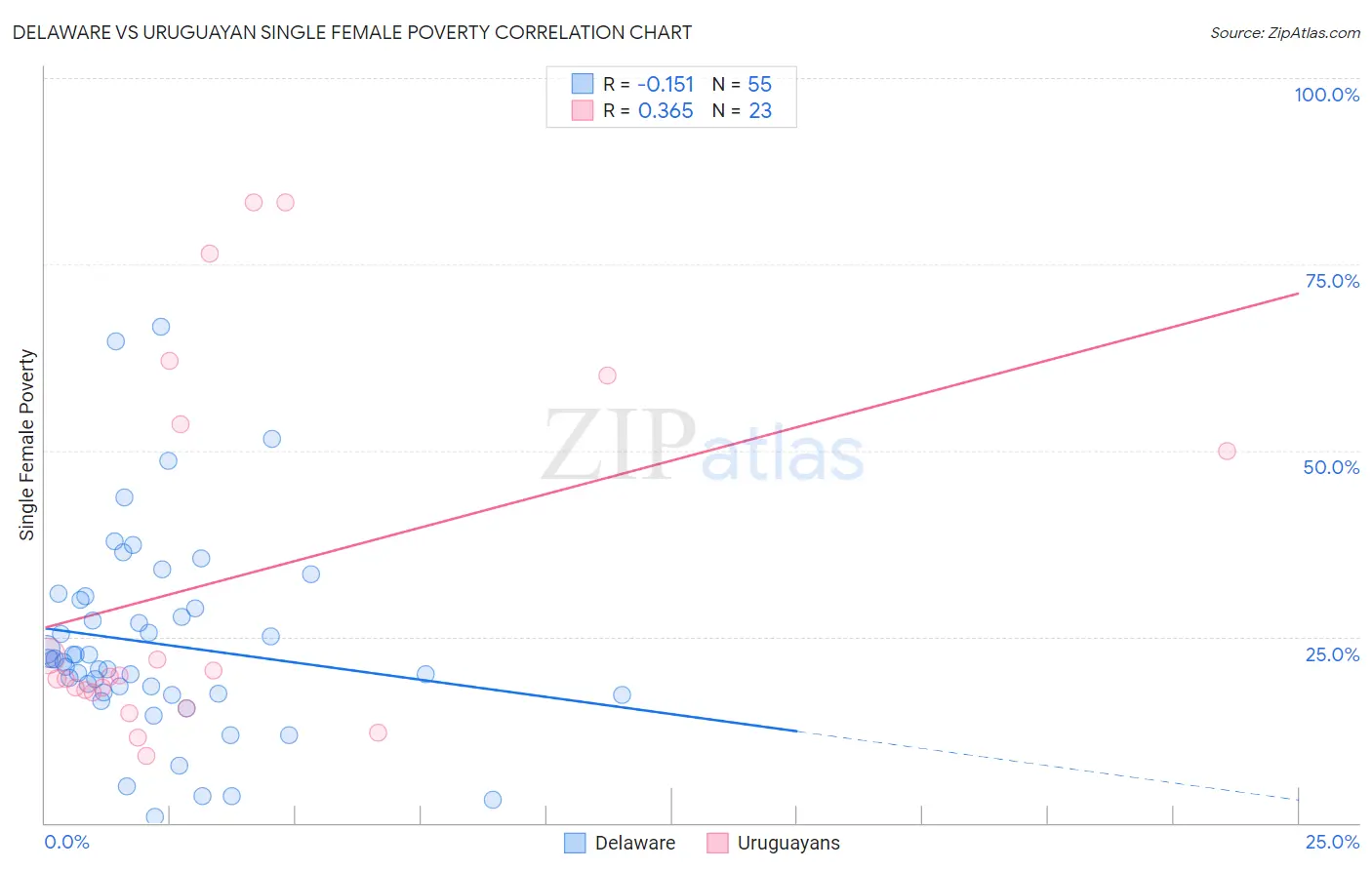 Delaware vs Uruguayan Single Female Poverty Correlation Chart