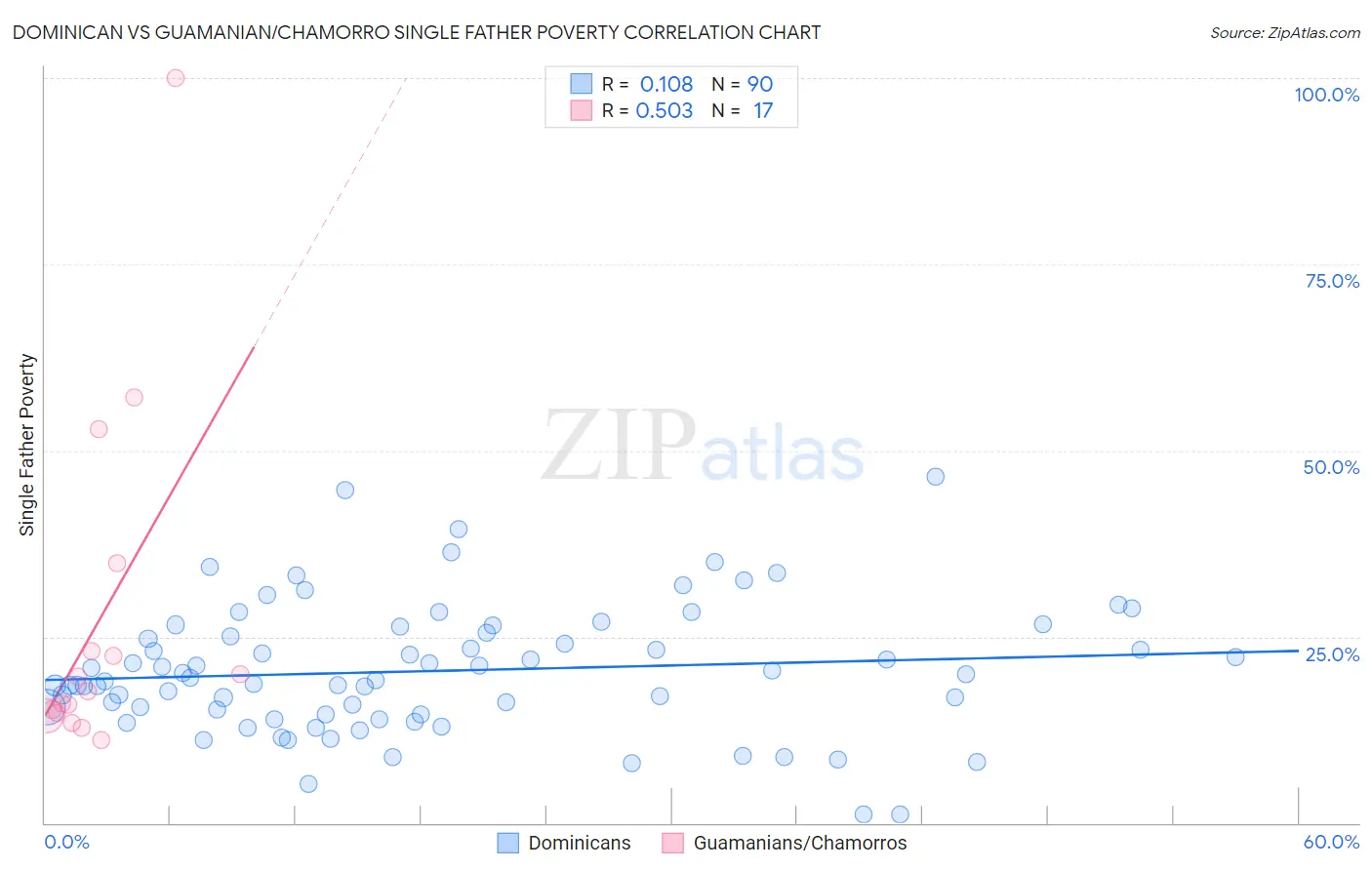 Dominican vs Guamanian/Chamorro Single Father Poverty Correlation Chart