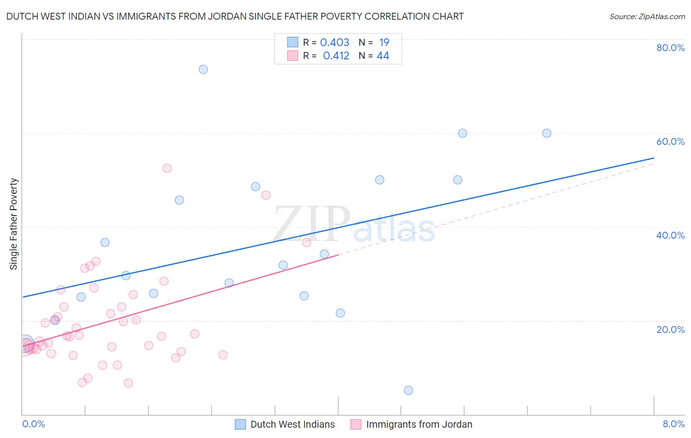 Dutch West Indian vs Immigrants from Jordan Single Father Poverty Correlation Chart