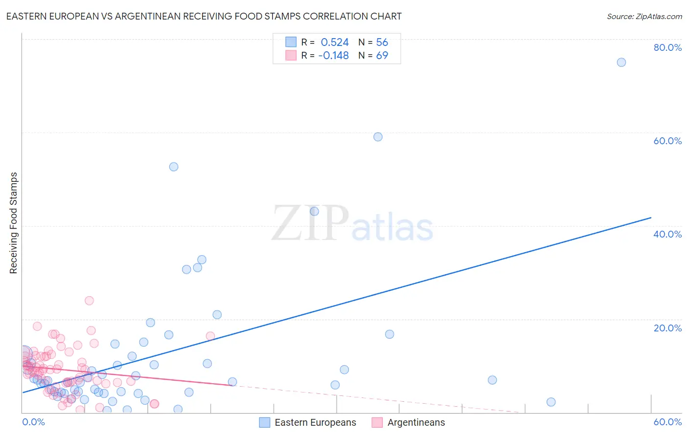 Eastern European vs Argentinean Receiving Food Stamps Correlation Chart