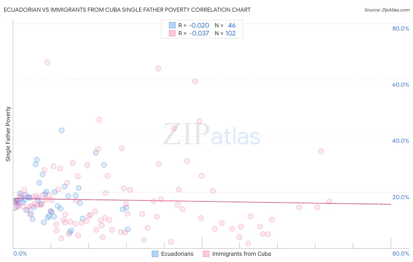 Ecuadorian vs Immigrants from Cuba Single Father Poverty Correlation Chart