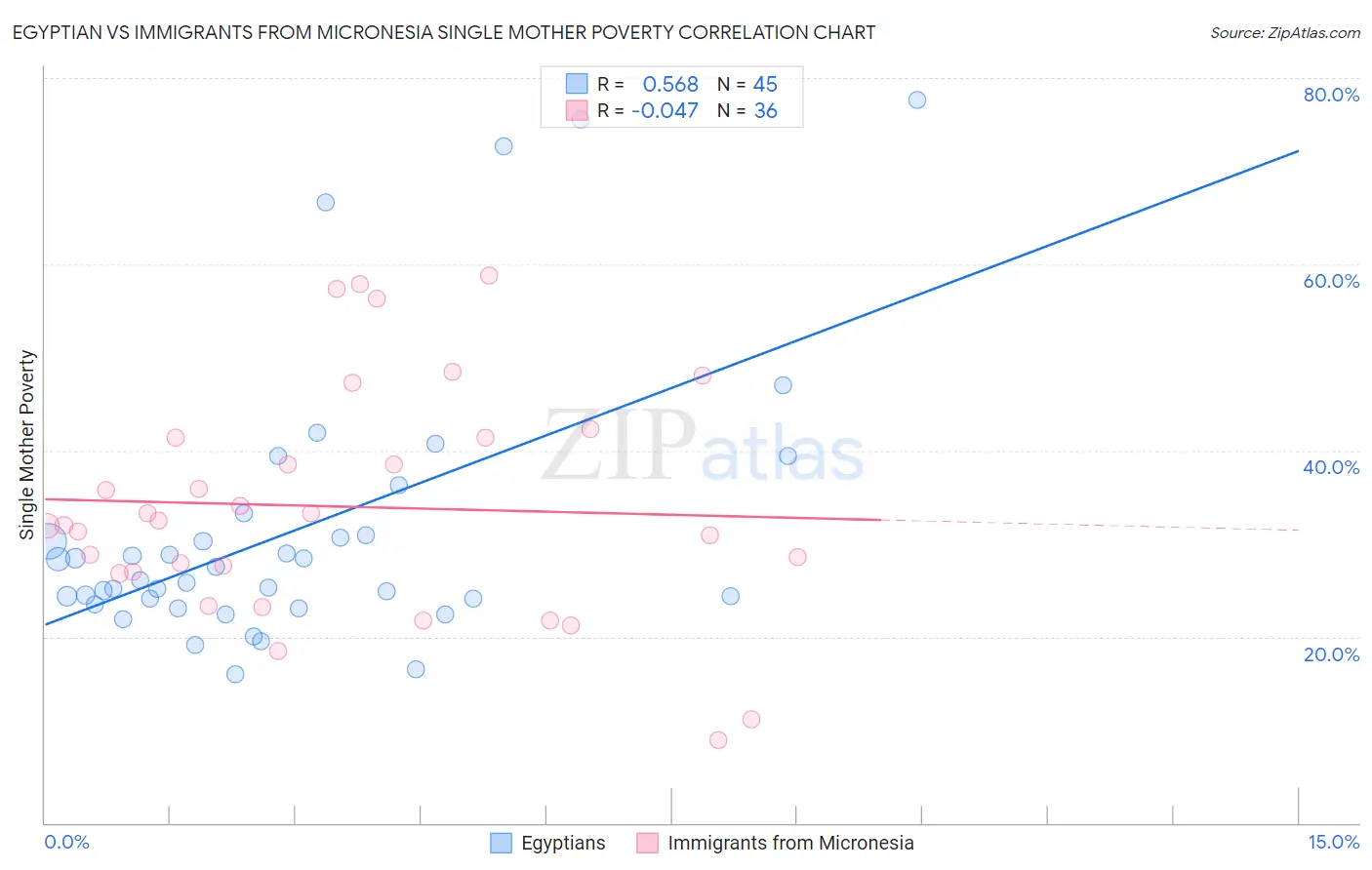 Egyptian vs Immigrants from Micronesia Single Mother Poverty Correlation Chart