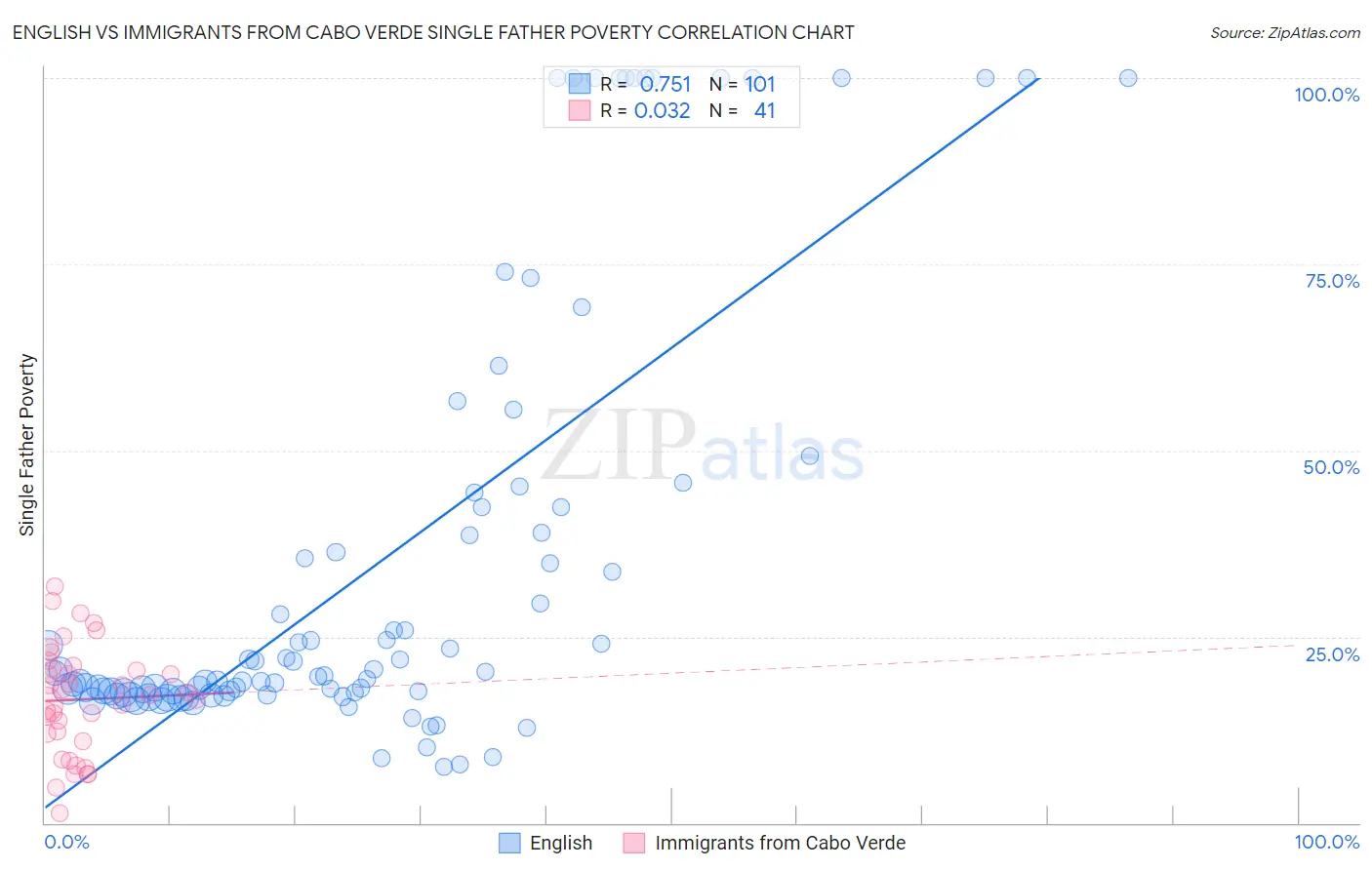 English vs Immigrants from Cabo Verde Single Father Poverty Correlation Chart