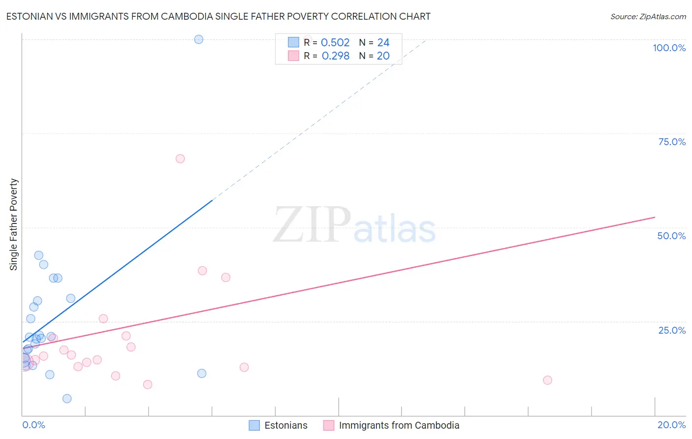 Estonian vs Immigrants from Cambodia Single Father Poverty Correlation Chart