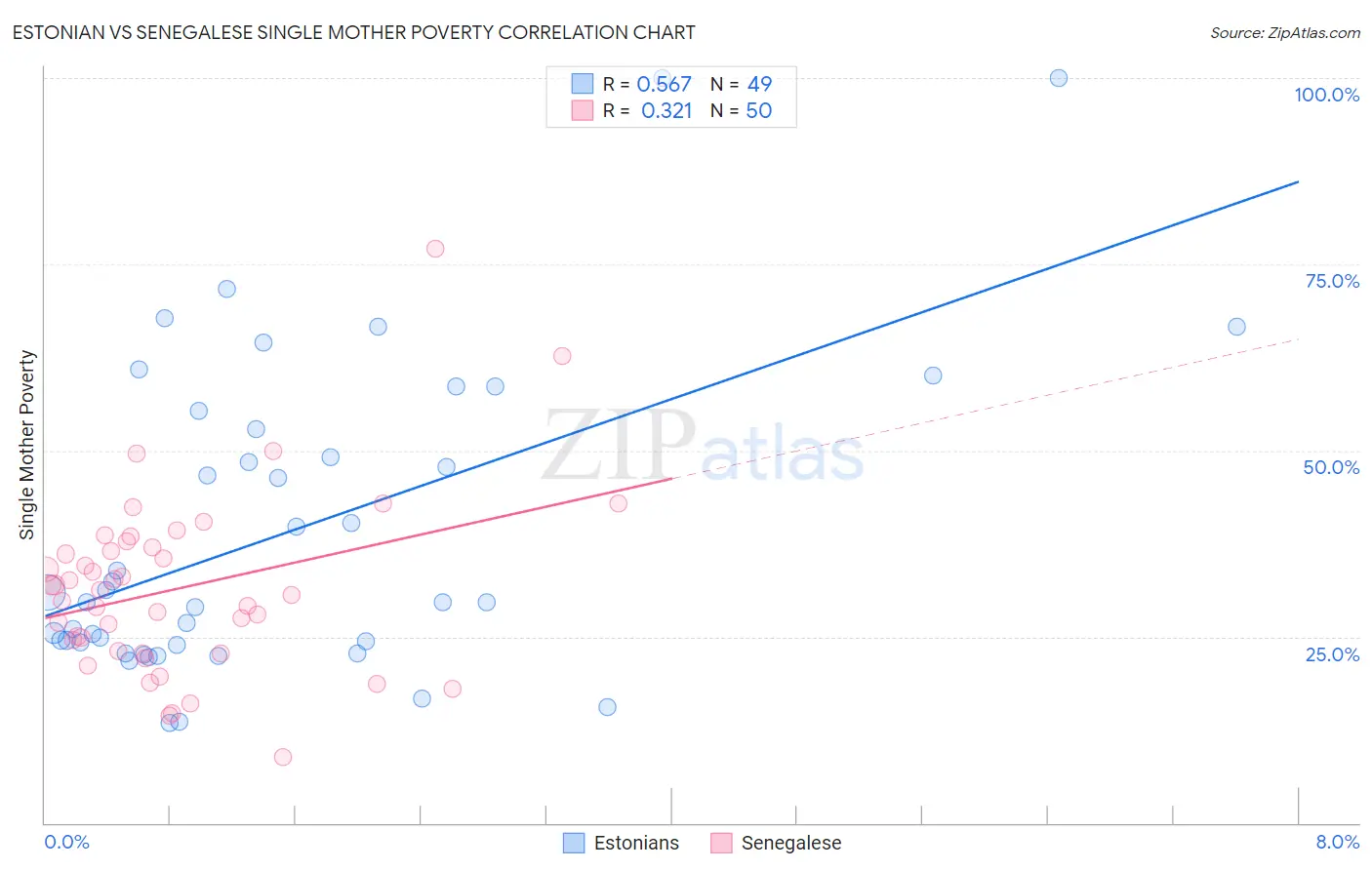 Estonian vs Senegalese Single Mother Poverty Correlation Chart