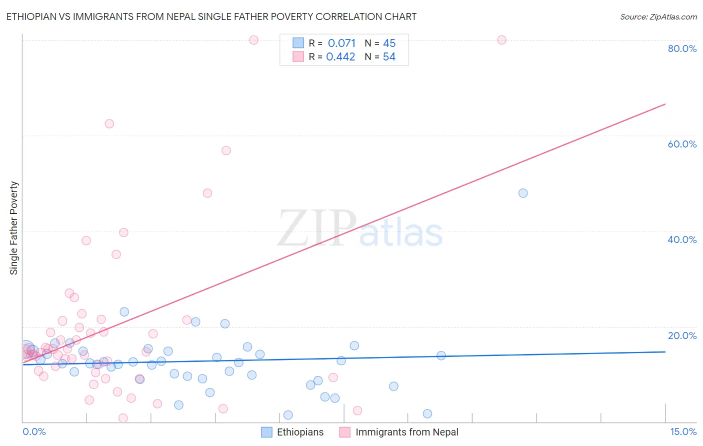 Ethiopian vs Immigrants from Nepal Single Father Poverty Correlation Chart