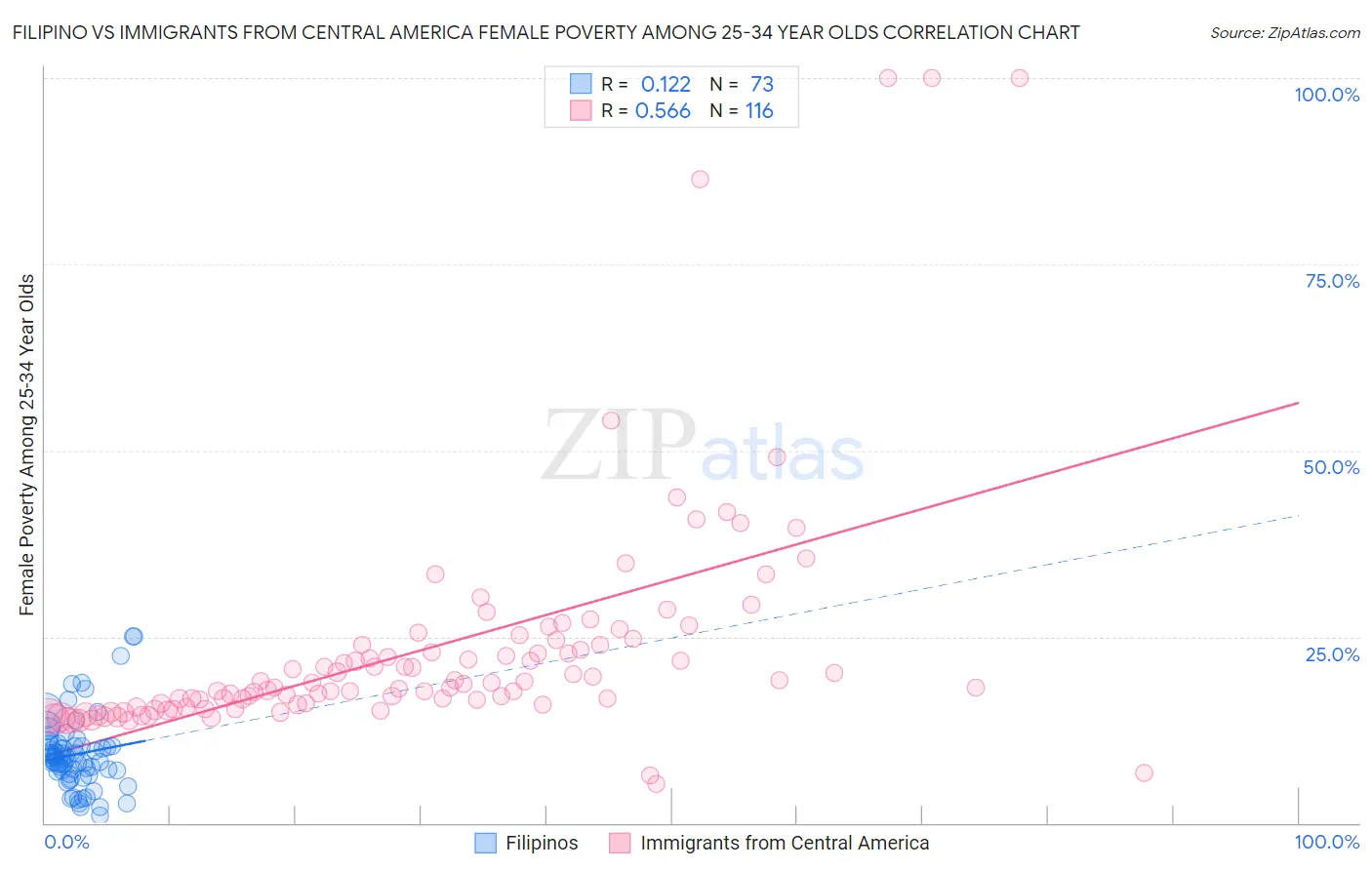Filipino vs Immigrants from Central America Female Poverty Among 25-34 Year Olds Correlation Chart