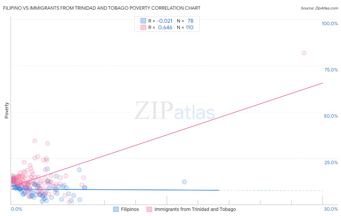 Filipino vs Immigrants from Trinidad and Tobago Poverty Correlation Chart